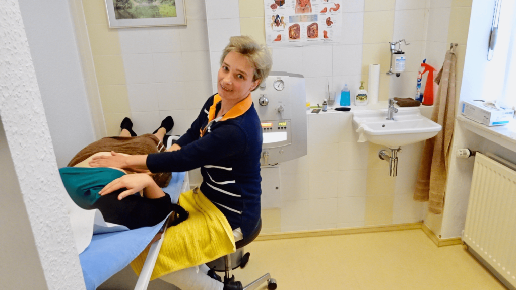 Die Colon-Hydro-Therapie reinigt den Darm schonend. Sie löst selbst hartnäckige alte Schlacken von den Innenwänden des Dickdarmes. Die Behandlung erfolgt durch ein geschlossenes System und ist somit vollkommen geruchsfrei und hygienisch. Die Dauer einer Behandlung beträgt 30-40 Min. Es sollten mindestens 3 Behandlungen innerhalb von einer Woche durchgeführt werden. Der Erfolg der Darmsanierung durch die Colon-Hydro-Therapie wird durch eine gesunde Ernährung und einer sogenannten Symbioselenkung unterstützt.